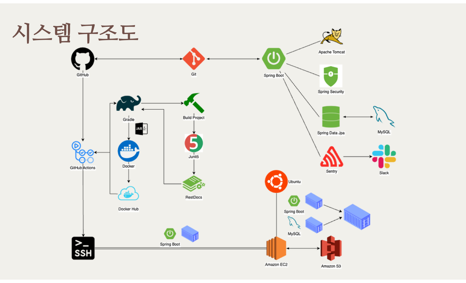 - Docker를 통해 컨테이너화한 이미지로, EC2에서 Docker Compose 수행을 통해 클라우드 네이티브 환경의 무중단 배포 구축