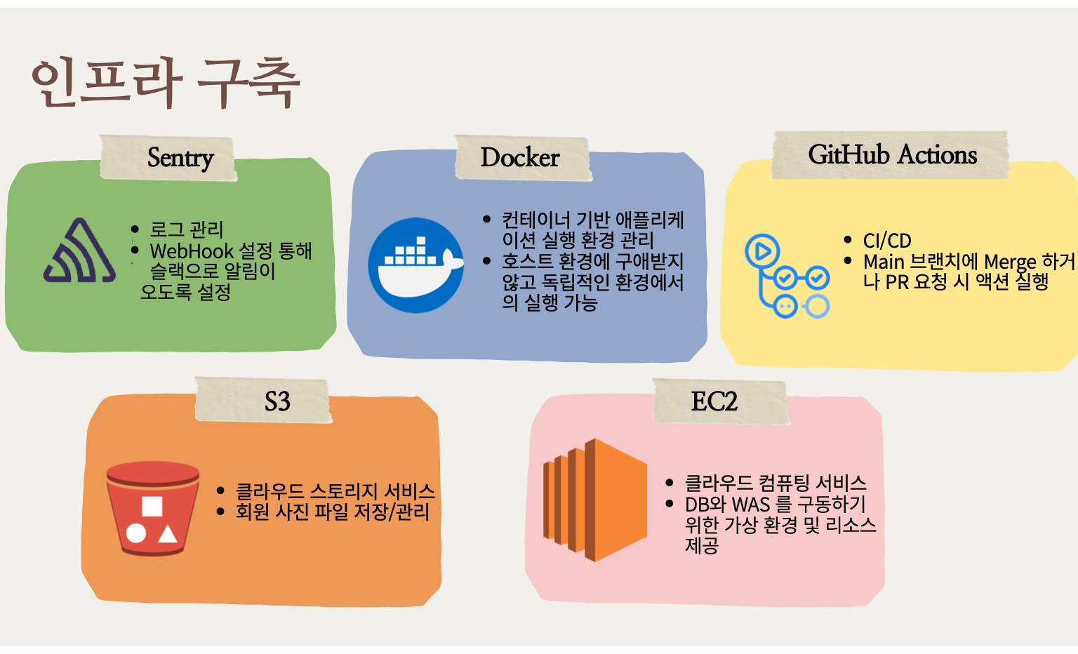 - CI/CD, 로깅 등 인프라 구축