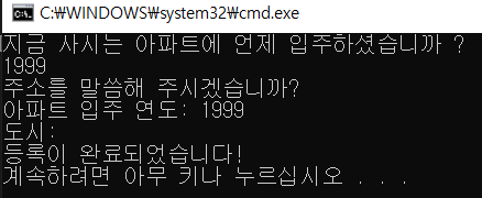 cout << "지금 사시는 아파트에 언제 입주하셨습니까 ? \n";