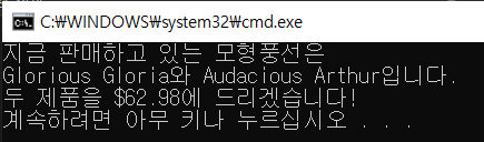 cout << "두 제품을 $";