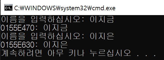 cout << "이름을 입력하십시오: ";