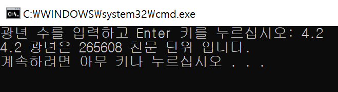 cout << "광년 수를 입력하고 Enter 키를 누르십시오: ";