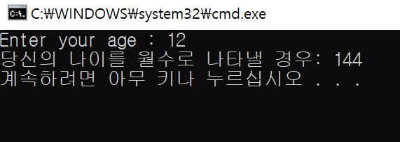 cout << "당신의 나이를 월수로 나타낼 경우: " << toM << endl;