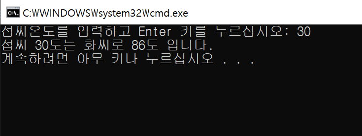 cout << "섭씨온도를 입력하고 Enter 키를 누르십시오: ";