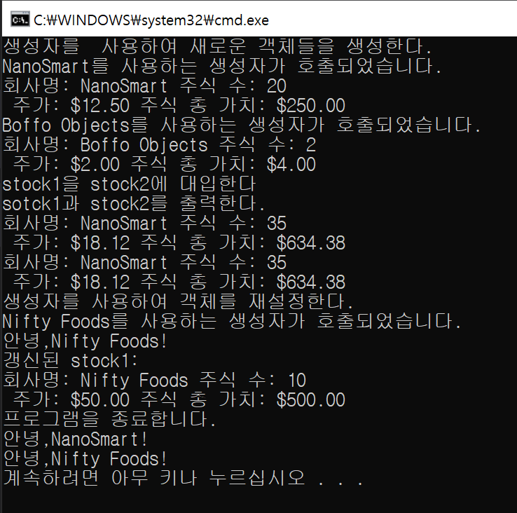 Stock::~Stock() //메시지를 출력하는 클래스 파괴자