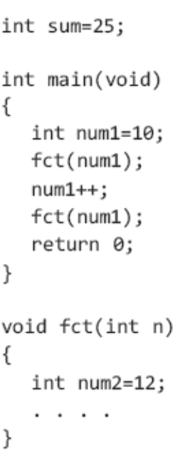 fct(num1)이 호출되면 num1을 인자로 전달하고