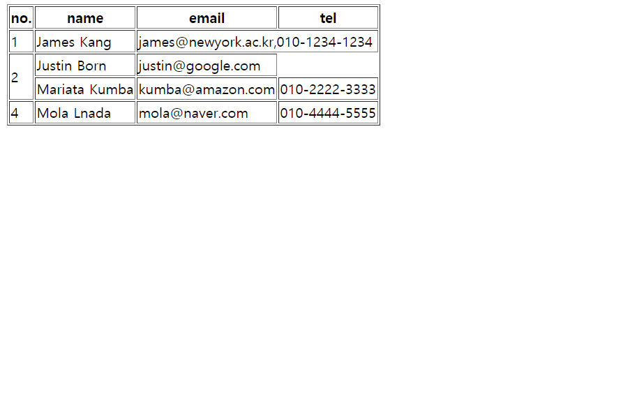 <td colspan="2">james@newyork.ac.kr,010-1234-1234</td>