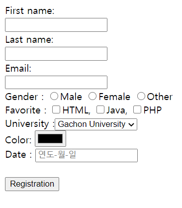 Date : <input type="text" placeholder="연도-월-일"><br><br>