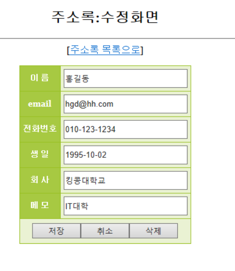 <H2>주소록:수정화면 </H2>