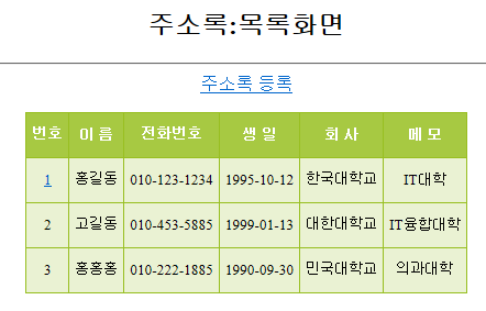 <H2>주소록:목록화면</H2>
