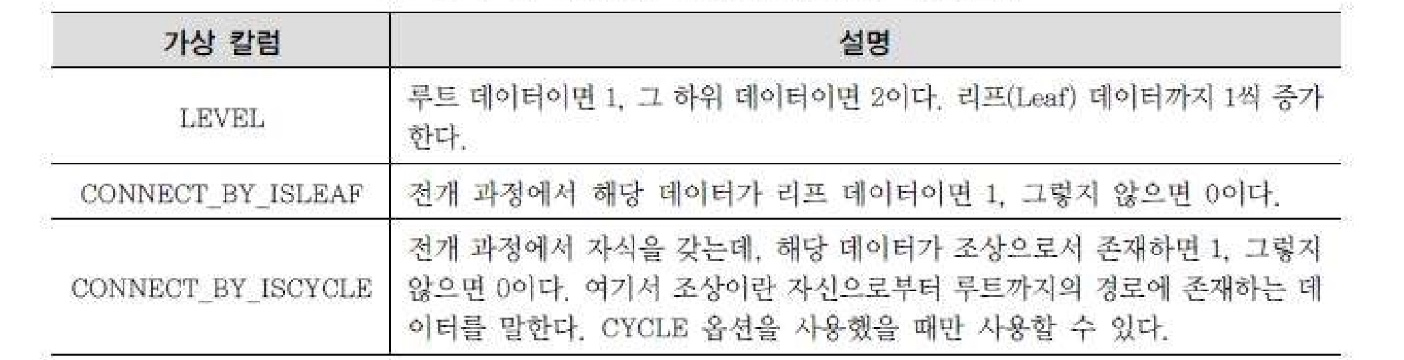 계층형 질의를 사용할 때 다음과 같은 가상 칼럼(Pseudo Column)을 제공