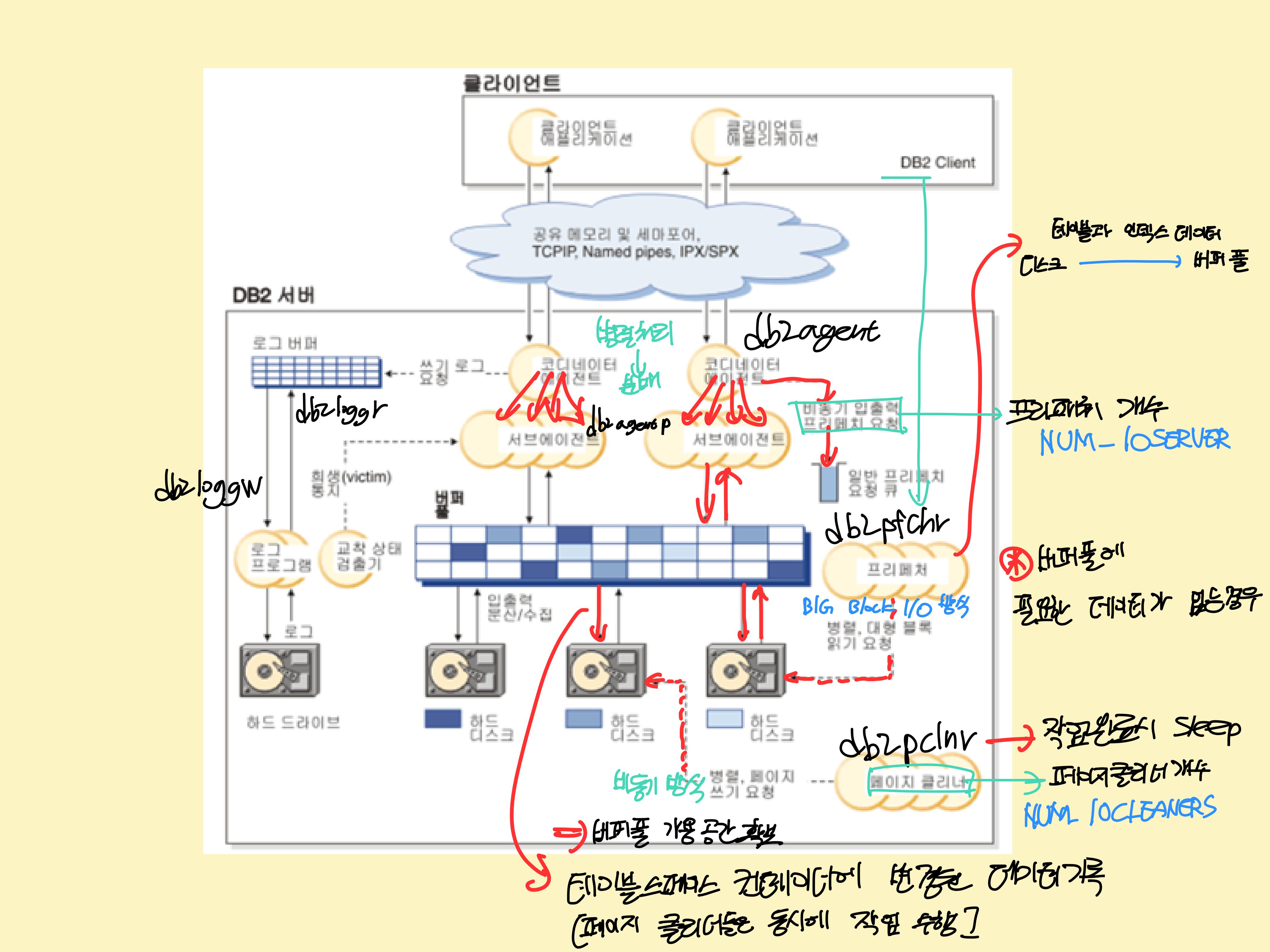 DB2 = 다중 스레드 기반의 모델 -> 자원의 효율적 사용
