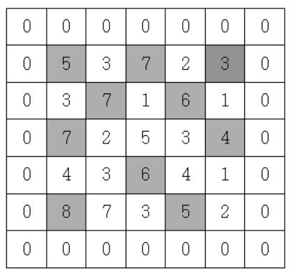 격자의 가장자리는 0으로 초기화 되었다고 가정한다.