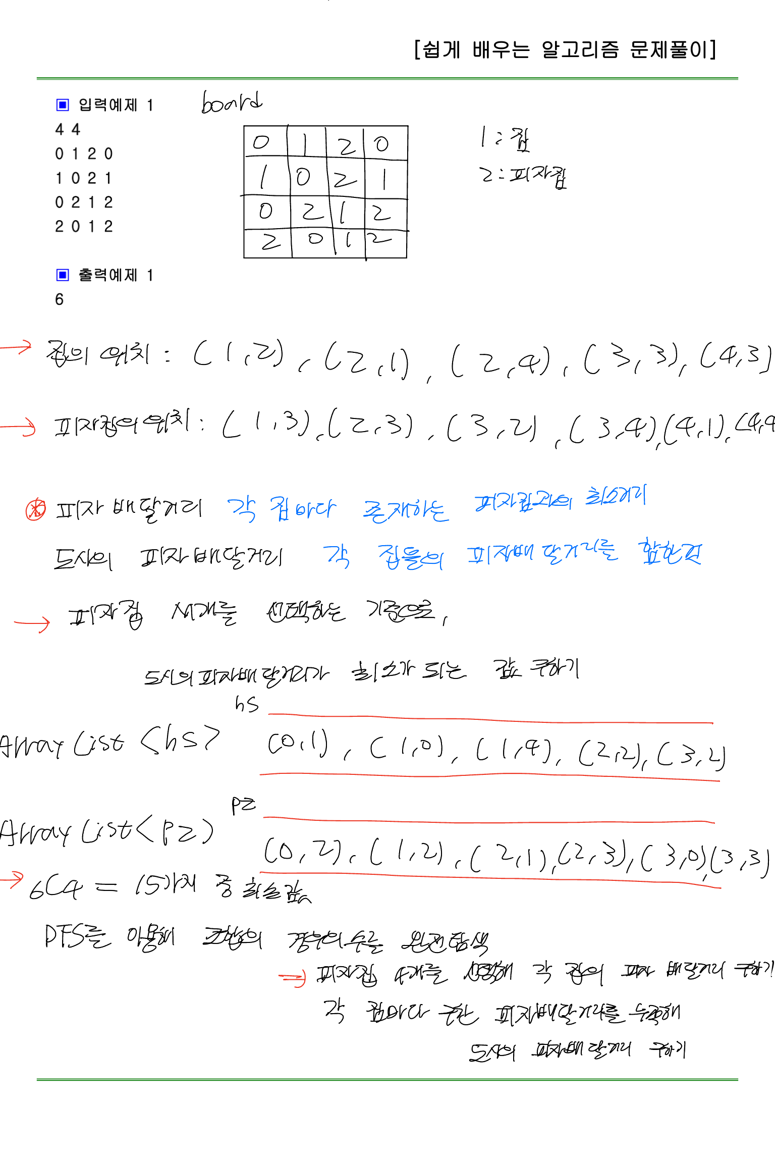 #조합의 경우에서, 피자배달거리 구하고, 도시의 피자배달거리 찾기