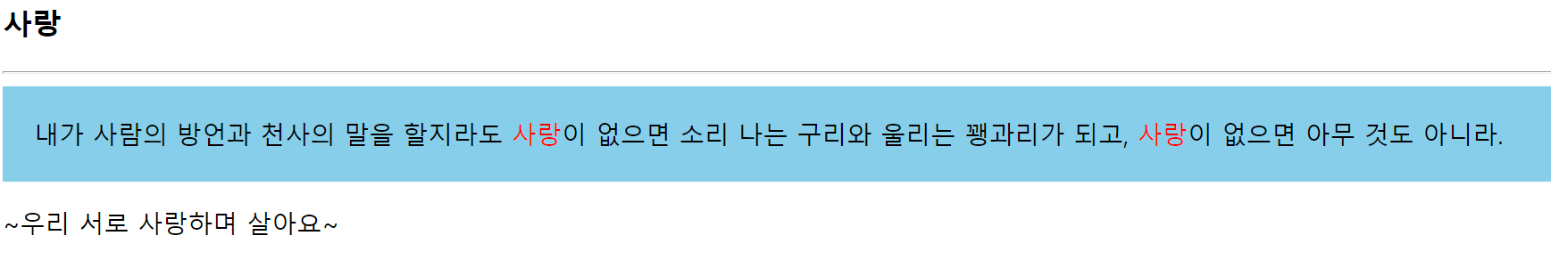 <span style="color:red">사랑</span>이 없으면 아무 것도 아니라.