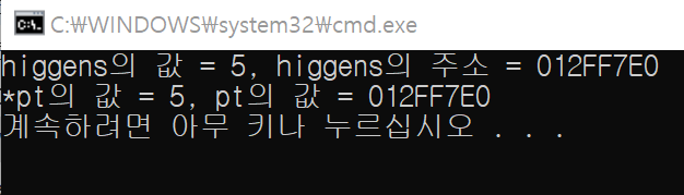 -> pt가 higgens의 주소로 초기화