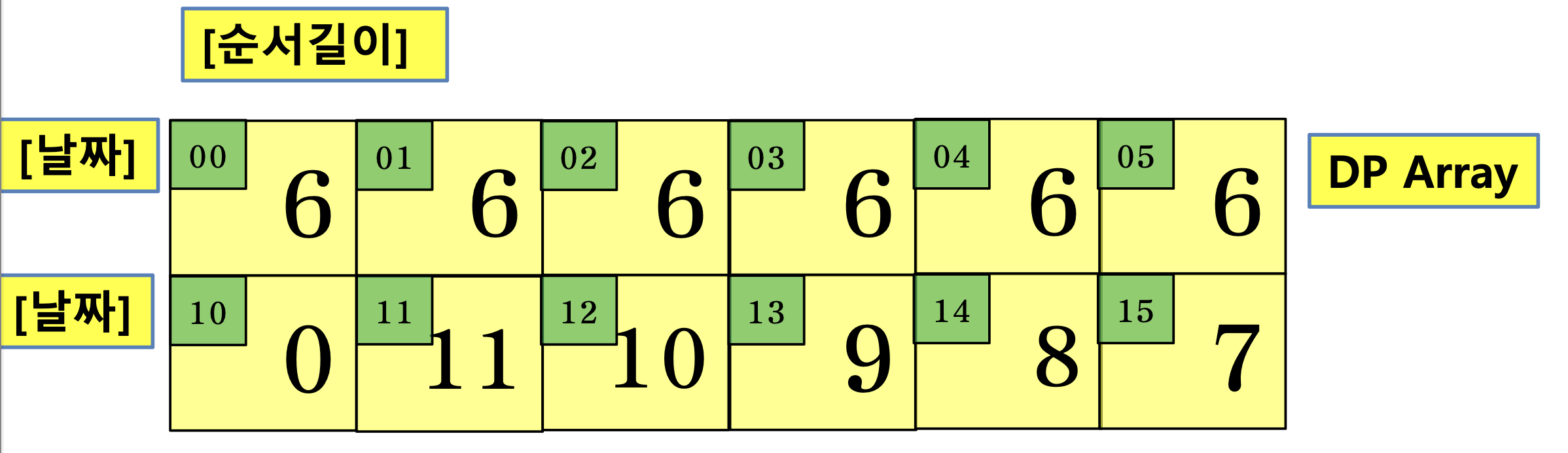 DP[i][j]는 해당 날짜의 순서길이에 해당하는 최솟값 배열