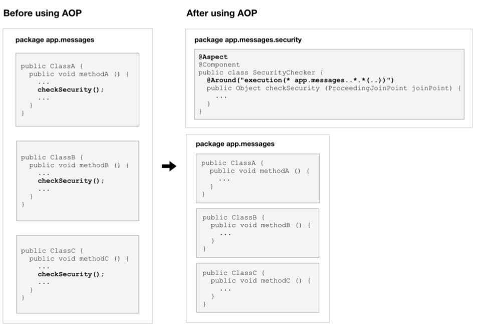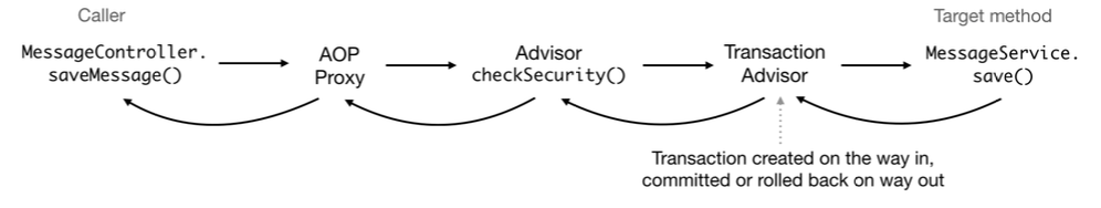 스프링의 트랜잭션 어드바이저가 checkSecurity() 어드바이저로부터 컨트롤 유입해 트랜잭션 생성