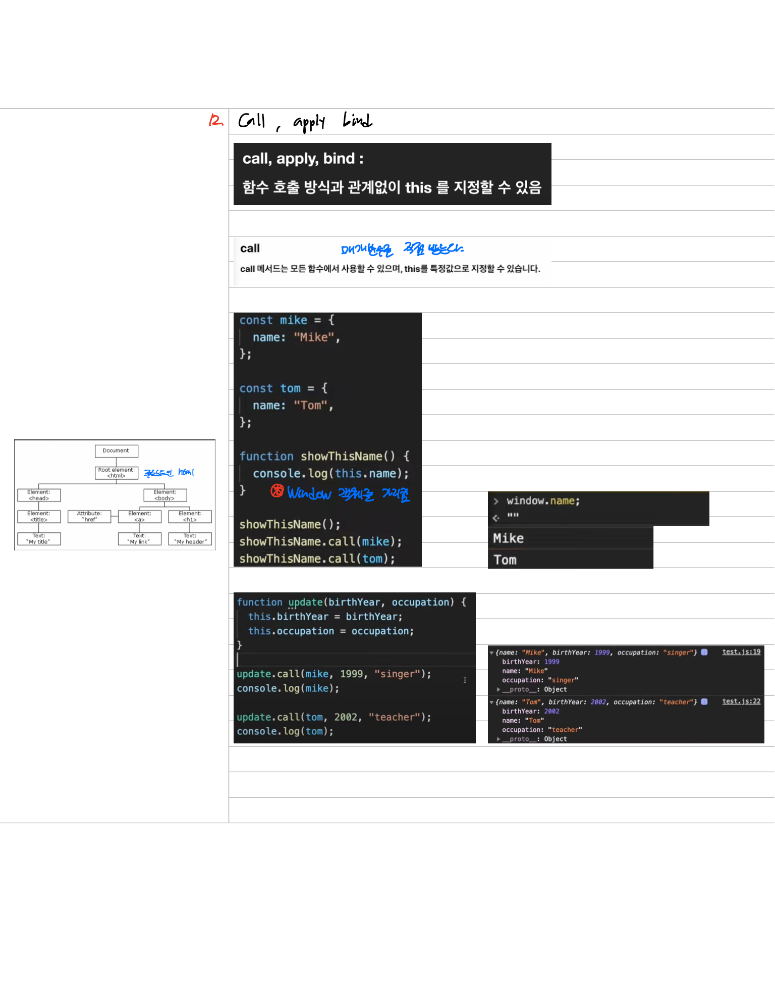 자바스크립트 call, apply, bind (+ 스프레드 연산자, 나머지 매개변수)